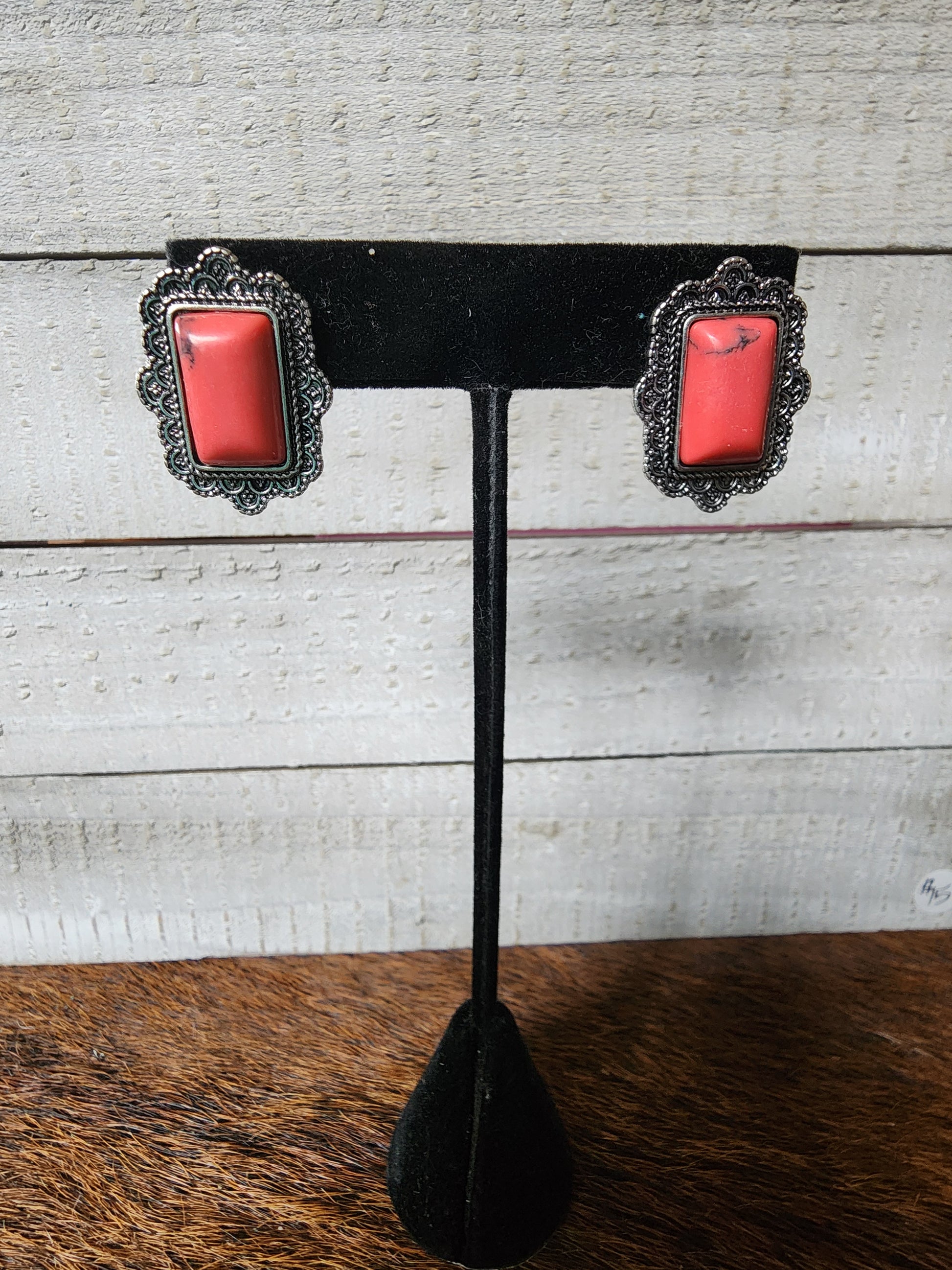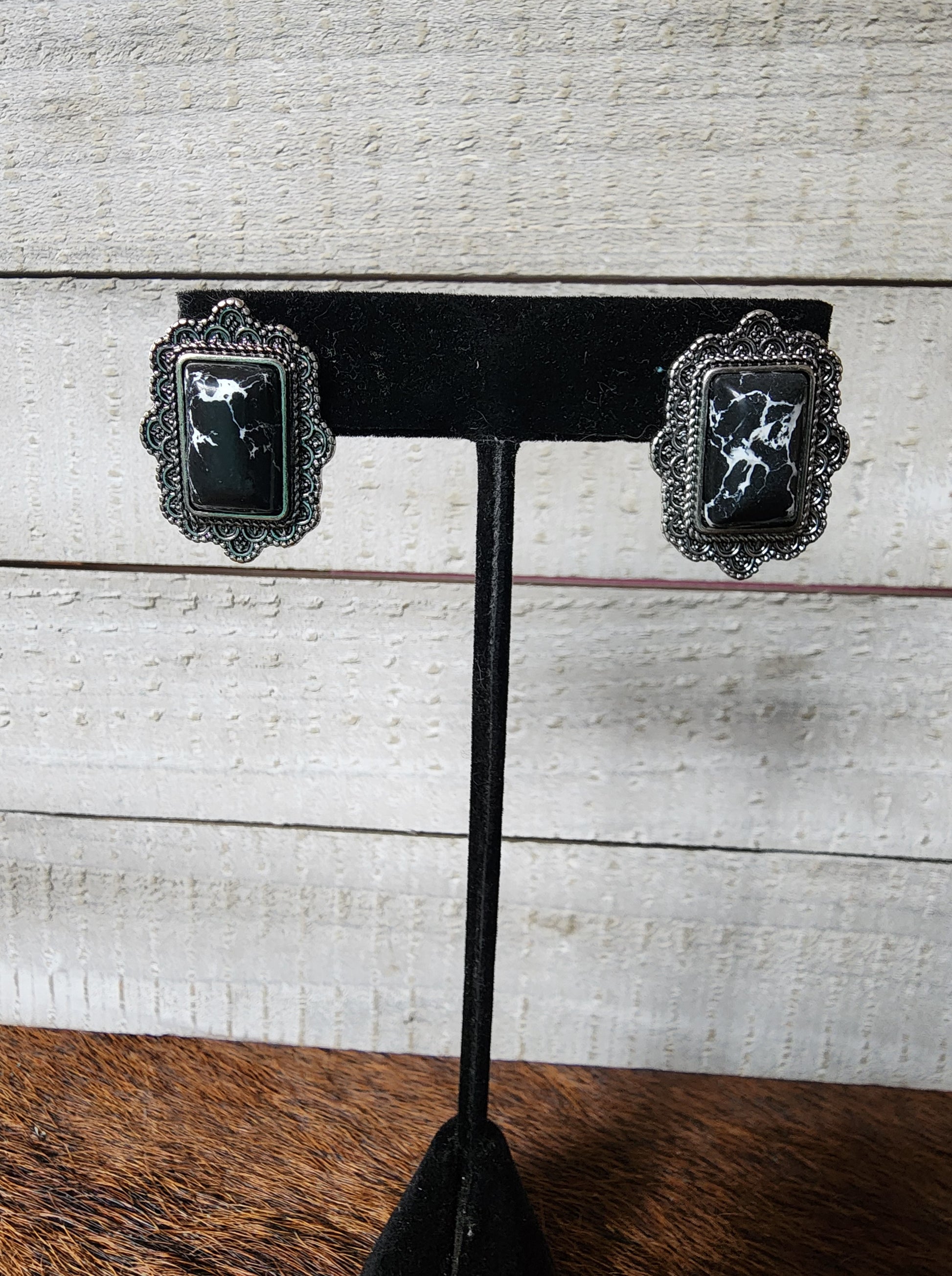 Beautiful stud earrings featuring faux stones in a detailed silver setting✨️