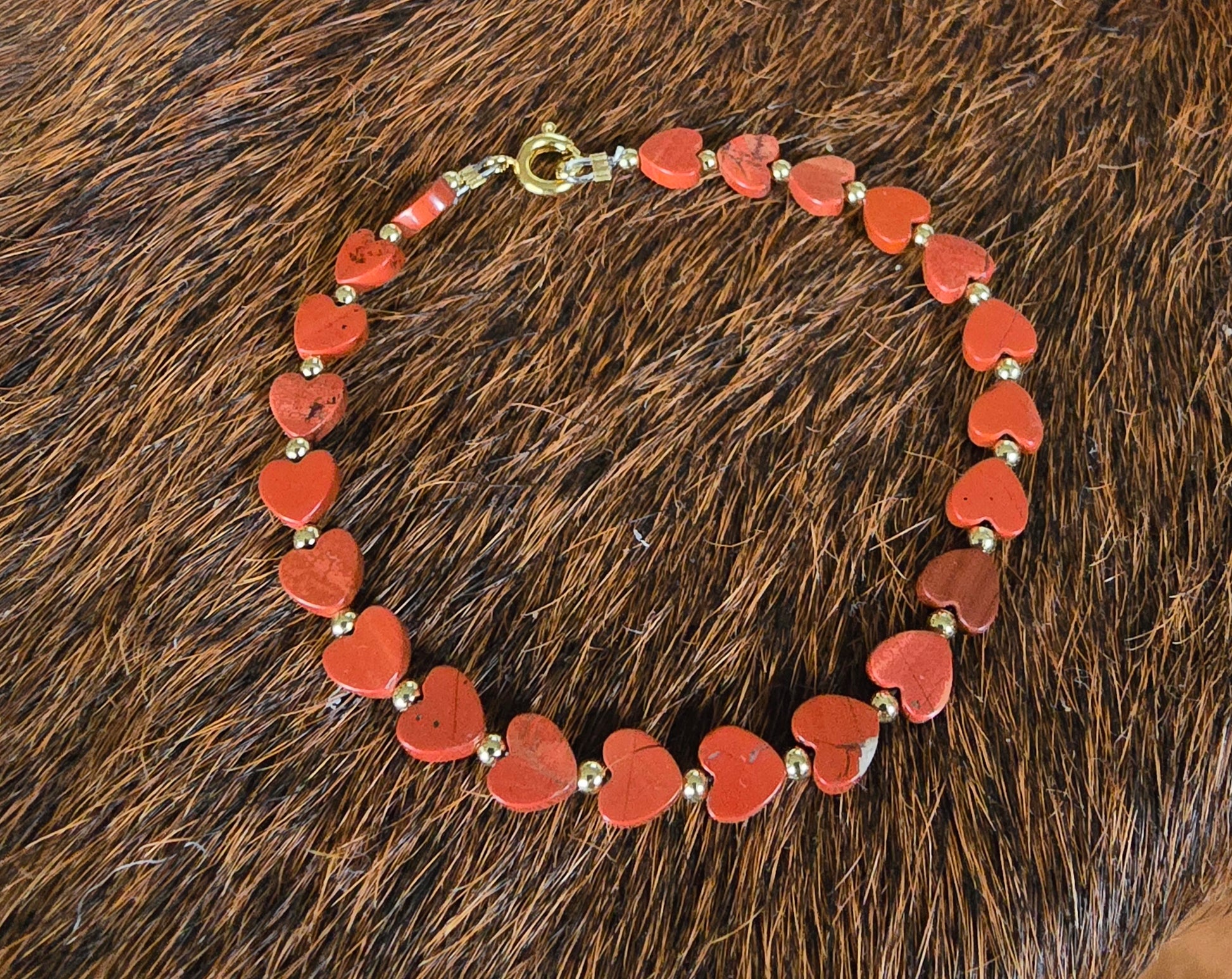 7" bracelet - Authentic red Jasper heart beads and 3mm 18k Gold filled beads, with an 18k gold plated sterling clasp. ❤️💛