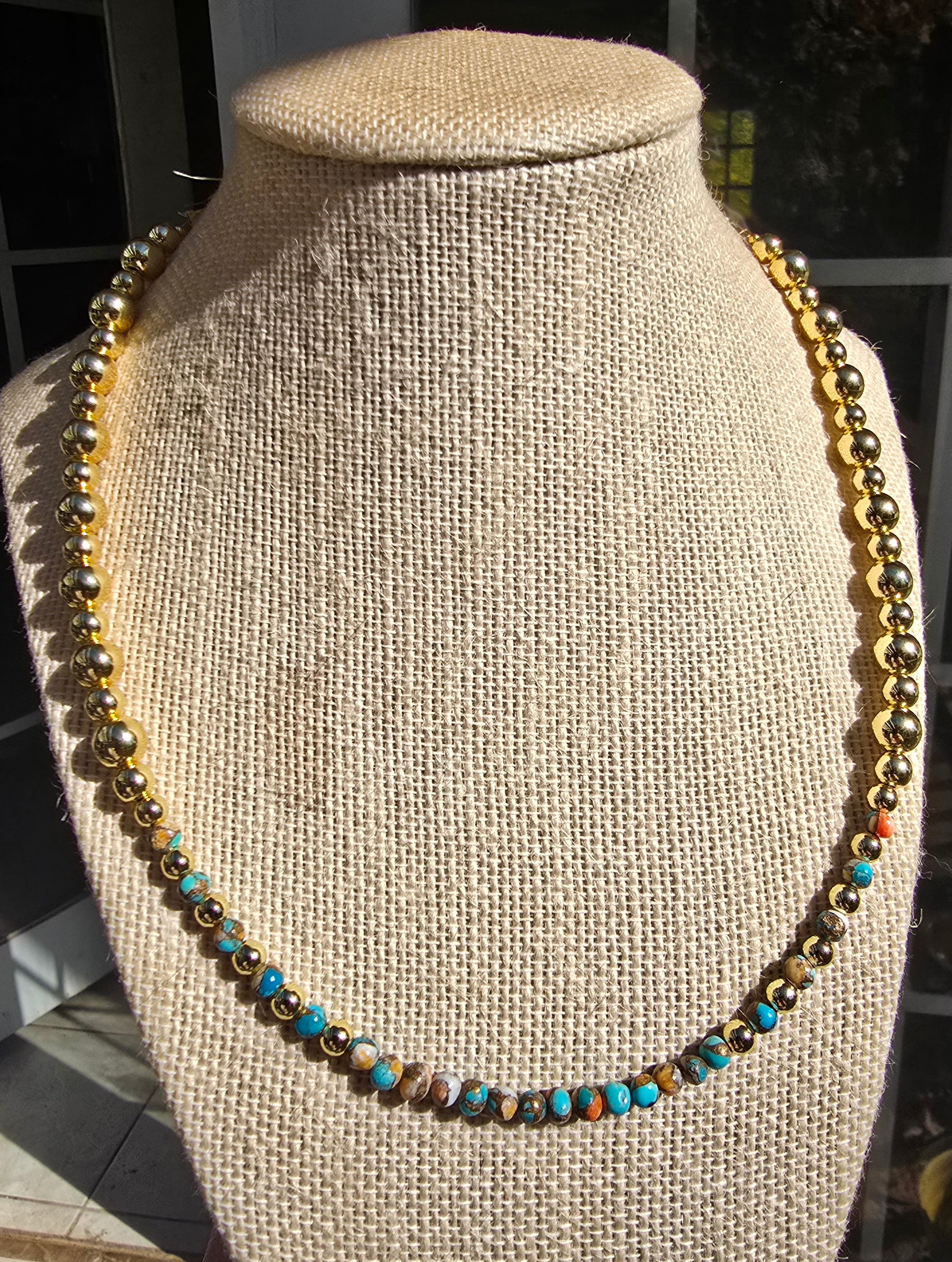 Authentic Kingman Mine Spiny oyster turquoise beads, 18k gold filled 4, 6 and 8mm beads, and a sterling 18k gold plated clasp! 💛🩵