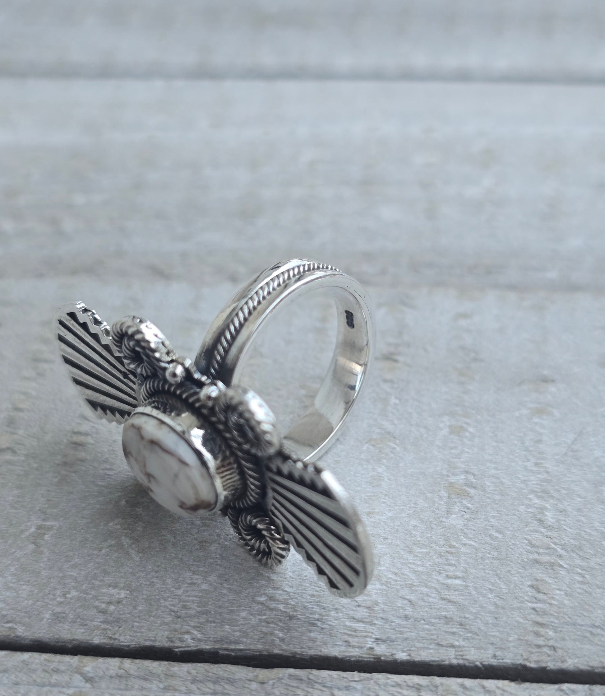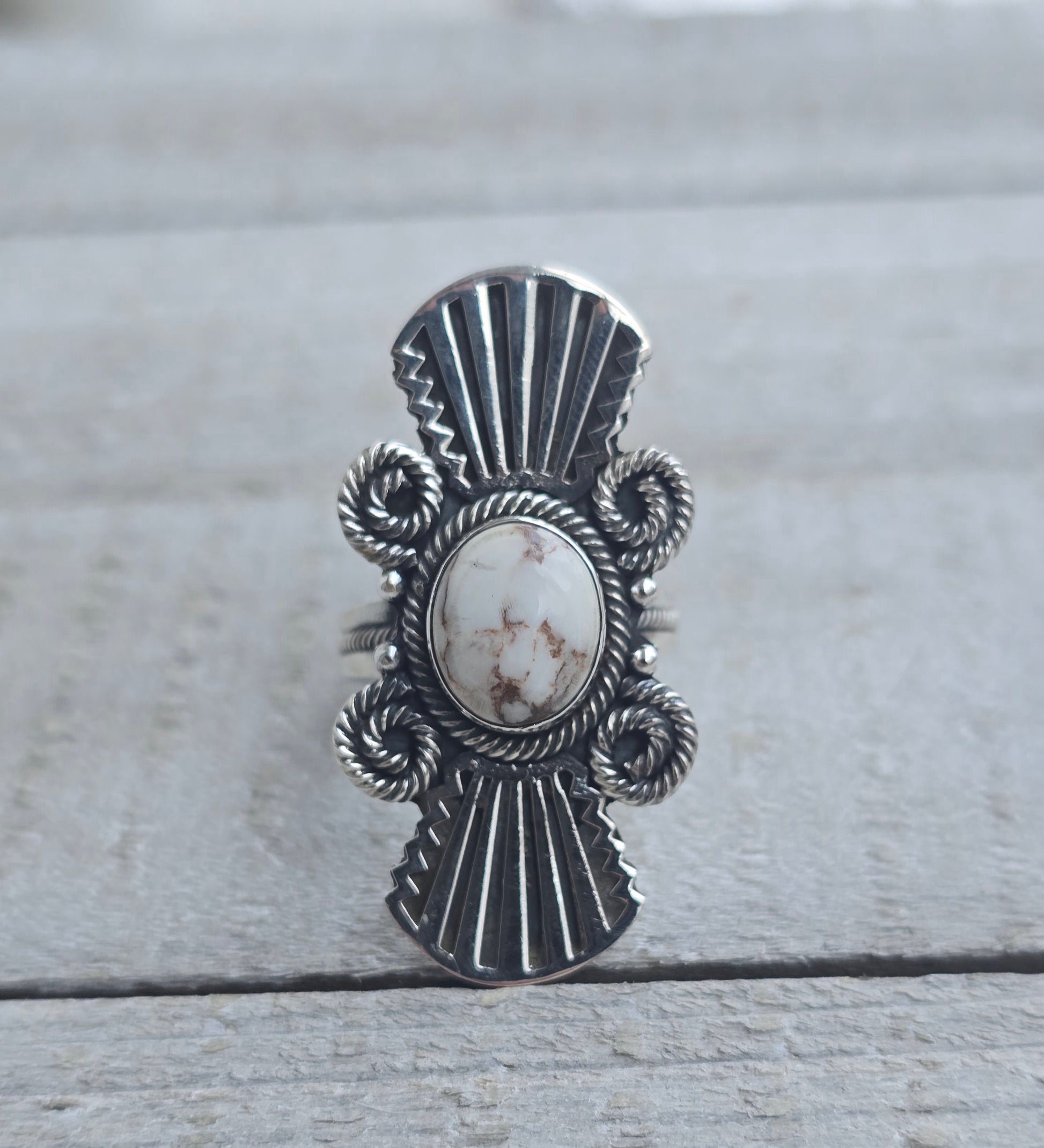 This beautiful ring has a southwestern design to it! Wild Horse Jasper stone & 925 stamped silver!